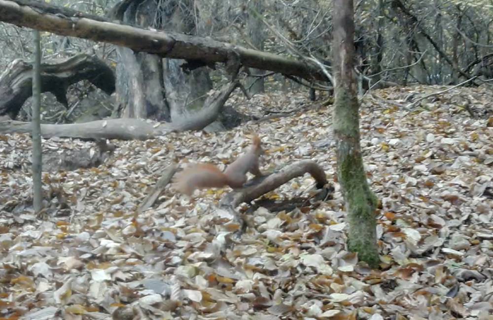 Wiewiórka zatrzymała się na chwilą przy borsuczej piaskownicy, nasza bohaterka najchętniej odwiedza lasy liściaste. W pyszczku trzyma fragmenty roślin, którymi zabezpieczy swoje gniazdo na mroźny, zimowy czas. Wówczas jej lokum będzie znacznie lepiej ogrzane niż w okresie lata.