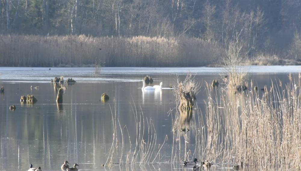 Na pierwszym planie obserwujemy zaś zbierające się w niewielkie grupy kaczki, złożone głównie z samic. Czyżby zbliżała się już wiosna? Trudno w to uwierzyć, ale tak to wyglada.