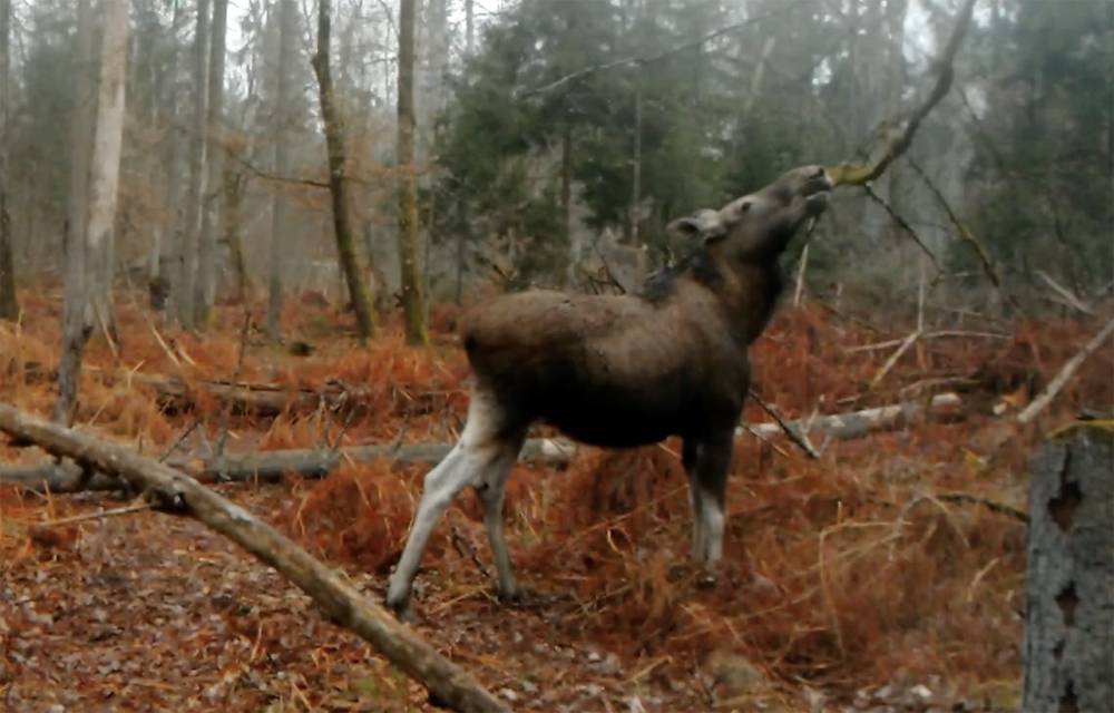 Przedwiośnie jest bardzo trudnym okresem dla dużych ssaków roślinożernych. Wycieńczone po okresie zimowym, wciąż jeszcze nie mają pokarmu, którym mogłyby zaspokoić głód. Stąd też i nietypowe miejsce w którym spotykamy łosie. Zanim zakwitną świeże rośliny nadwodne, zwierzęta migrują na tereny, w których znajdą choć odrobinę pożywienia. Na dłużej z pewnością zatrzymają się przy borówce, choć jak widzimy, w ostateczności obgryzą nawet pędy drzew liściastych.