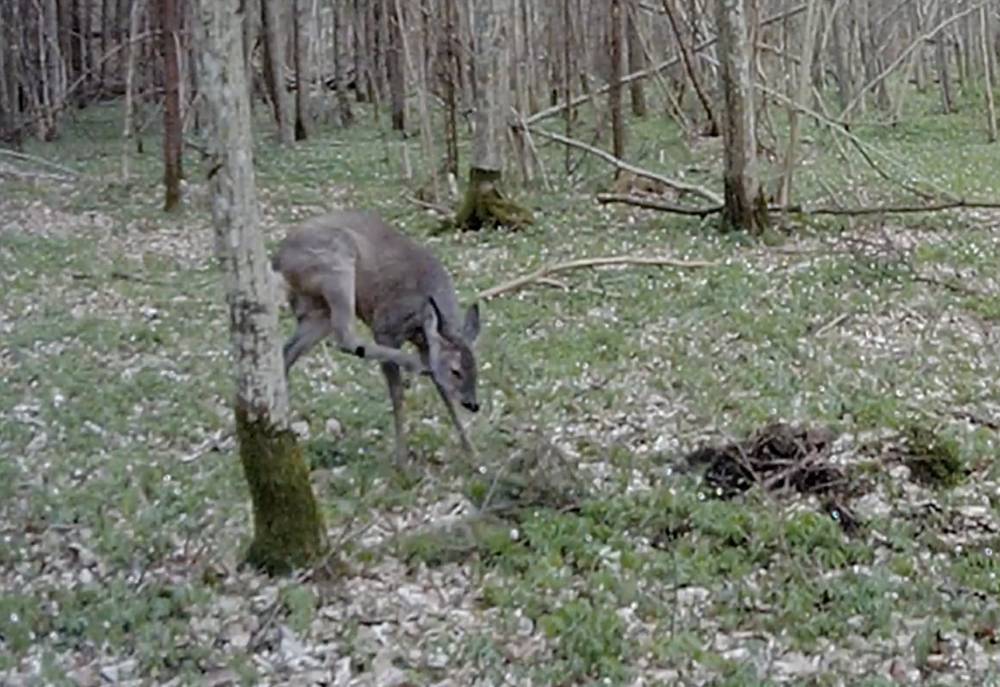 Kwiecień potrafi zaskoczyć jeszcze zimą. Dwa, jakże różne ujęcia dzieli zaledwie kilka dni. Przykryta śniegiem polana stanowi dolinę rzeki Perebel. Póki nie pojawią się tu świeże rośliny zielone, zwierzęta mogą skorzystać z podziemnych kłączy roślin wieloletnich. To chętnie odwiedzane miejsce przez duże ssaki roślinożerne i to o każdej porze roku. Spotykaliśmy tu sarny, a także jelenie i żubry. Jeszcze tylko nie udało nam się spotkać wilczej watahy, choć to pewnie też kwestia czasu.