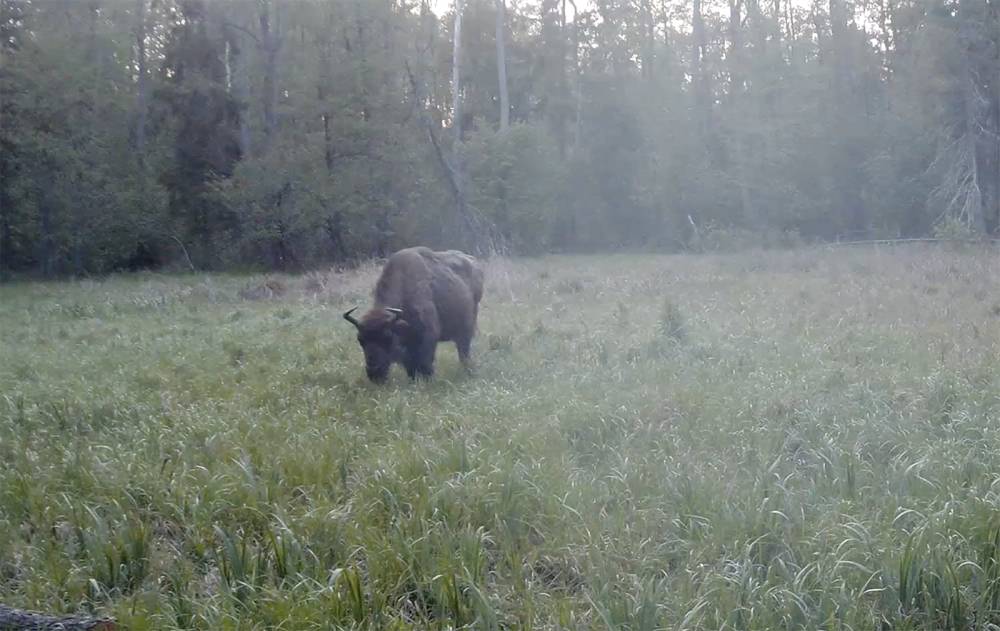 Na filmie widać okazały brzuch krowy. Kto wie, może tym razem pojawi się rzadko występująca u żubrów ciąża bliźniacza?