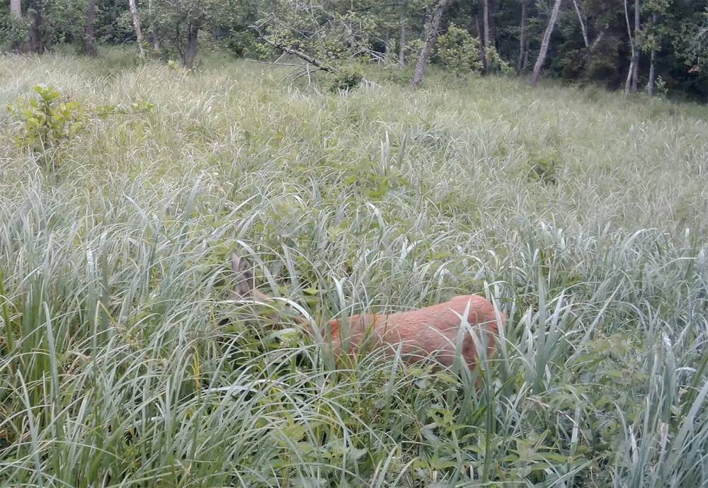 Sarna z pewnością odnalazła się w tym miejscu jak na królewskiej uczcie. Nie dość, że swobodnie wybiera w najróżniejszych przysmakach, to może się również czuć zupełnie bezpieczna w naturalnej zasłonie wysokich traw.