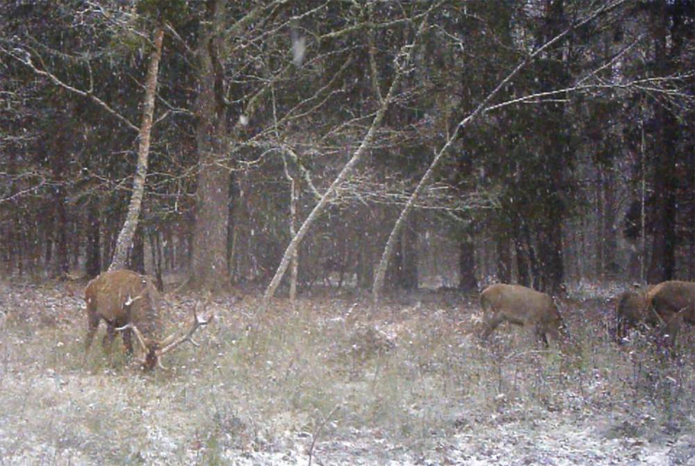 Doświadczenie i obserwacja podpowiadają nam, że ten dorodny byk powinien raczej przebywać w gronie męskich kamratów, a nie w towarzystwie dam. Z jakiś jednak powodów grudniowa śnieżyca zastała go właśnie wśród łań i młodych jeleni. Jak nietypowe by się to nie wydawało, to właśnie takie odstępstwa od reguł i zasad - istniejących głównie w naszych, dążących do porządku, głowach - sprawiają, że świat przyrody wydaje się jeszcze bardziej tajemniczy, pełen niespodzianek, a przez to ciekawszy.