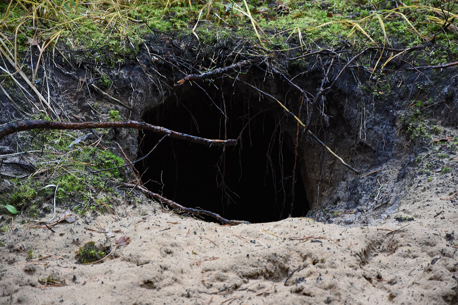 Mam taki zwyczaj, że tuż po zakończeniu rykowiska wyruszam na długie wędrówki po puszczy w poszukiwaniu wilczych ofiar. Zmęczone godami byki stają się wówczas łatwym łupem dla drapieżników, płacąc najwyższą cenę za chwilę nieuwagi. Podczas jednej z ostatnich wypraw natrafiłem na norę, która z daleka wyglądała na borsuczą. Gdy zbliżałem się do tajemniczej dziury wiedziałem już jednak, że otwór jest zdecydowanie zbyt duży na siedzibę borsuków - miał około pół metra średnicy. Kusiło mnie bardzo, żeby zajrzeć do środka i sprawdzić głębokość, ale jednocześnie obawiałem się, że nora może nie być opuszczona. Odwagi dodała mi pajęcza sieć rozciągnięta tuż przy wejściu - znak, że od dawna nikt tu nie zaglądał.