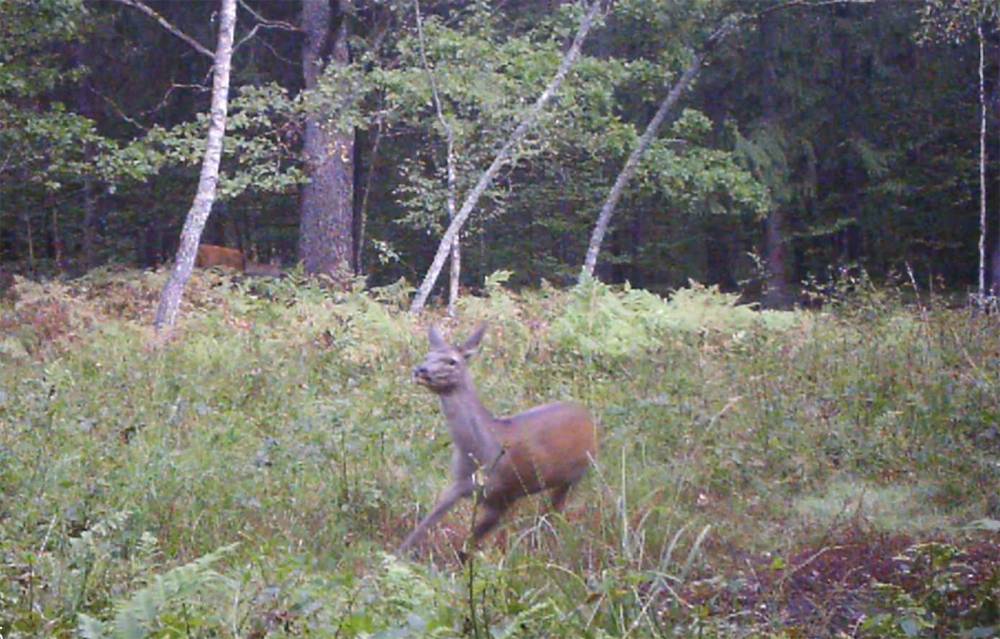 Nie było też żadnych powodów do niepokoju - ucieczka okazała się niezbyt daleka. Uważne oczy obserwatorów dostrzegą żerujące stado w cieniu drzew, tuż na skraju lasu. W tanecznych pląsach łania właśnie dołączyła do swoich towarzyszek.
