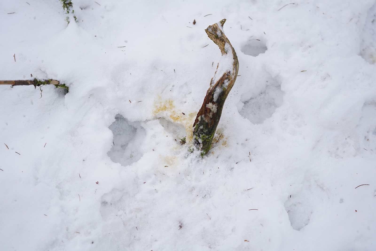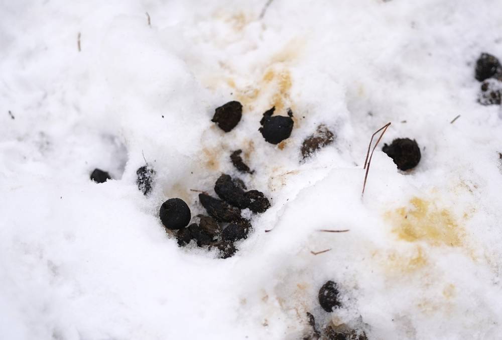 Świeże tropy wskazywały, że borsuk, wraz z niewielkim zelżeniem mrozów, postanowił wyjść z podziemi w poszukiwaniu pożywienia. Zastanawiacie się zapewne, co może znaleźć do jedzenia w tak trudnych warunkach. Jego głównym pokarmem są przecież dżdżownice, niemal niedostępne pod zmarzniętą na kość glebą. Borsuk ma jednak bardzo silne pazury, widać było, jak próbował kopać niewielkie dołki, choć trudno powiedzieć, czy udało mu się coś znaleźć. Alternatywą mogą być gryzonie, które pod śniegiem radzą sobie całkiem nieźle, a on, dzięki znakomitemu węchowi, mógłby je stosunkowo łatwo zlokalizować.