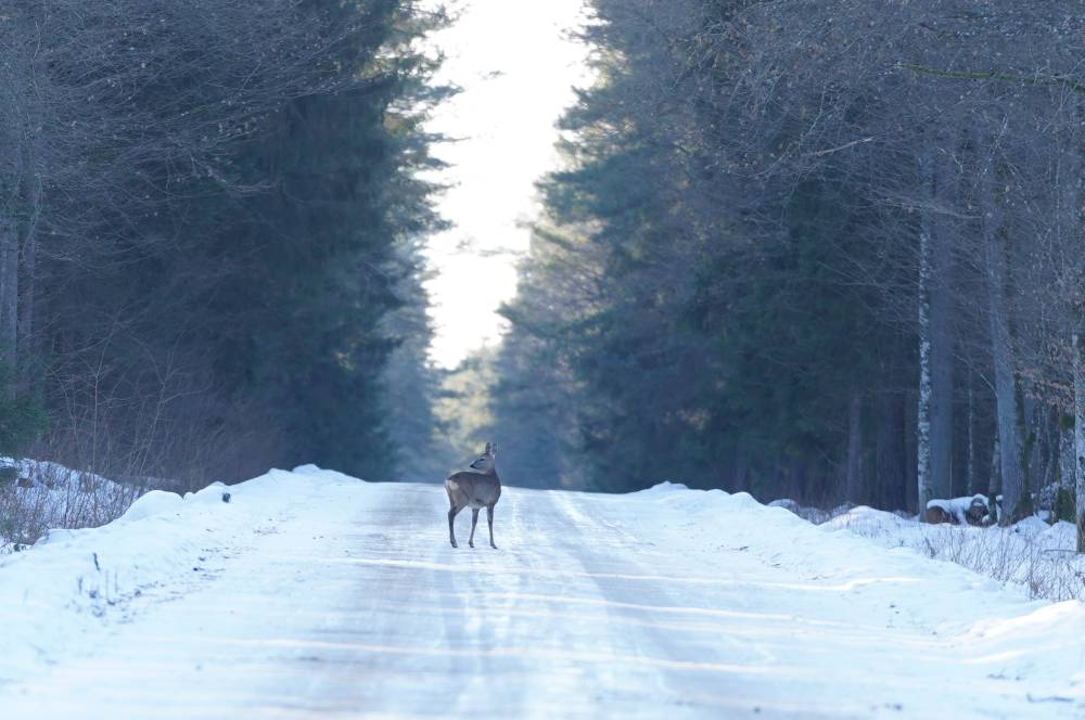 Zatrzymałem auto w znacznej odległości przed stojącą na środku drogi sarną. Samica oglądała się za siebie, jakby na kogoś czekała, i w tamtej chwili wydawało się to dla niej znacznie ważniejsze niż nadjeżdżający pojazd.