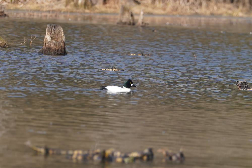 Gdy tylko staw w Topile uwolnił wodę ze swych lodowych ramion, od razu zrobiło się tu gwarno. Słychać już w powietrzu charakterystyczny, świszczący dźwięk. Taki szelest wywołują w trakcie lotu gągoły.